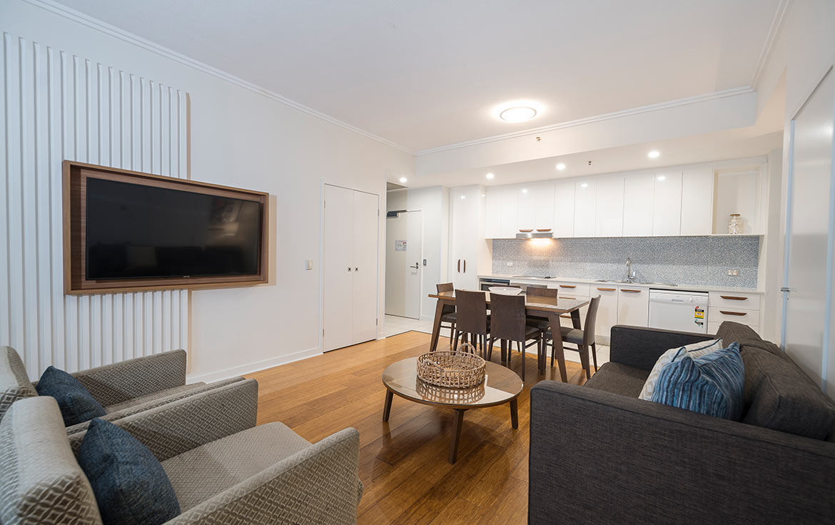 Full kitchen and laundry, ensuite in master bedroom (shower only), main bathroom (shower and separate bath), private balcony, air-conditioned (reverse cycle), DVD/stereo combo, Austar & VOD, cots available on request (charges apply), highchairs available on request (charges apply), no rollaways available.
